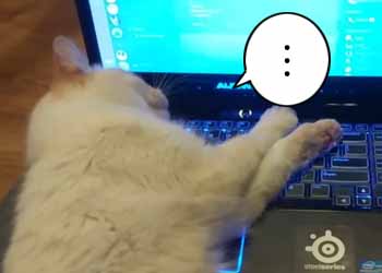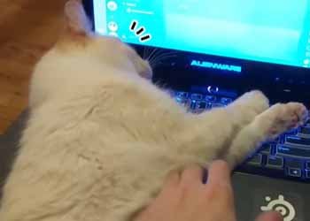 飼い主さんが台所から戻ってくると、猫がノートPCの上で昼寝をしようとしていた。