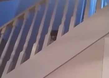 猫が手すりの間からこっちを見ていた。全然階段を降りてこない。
