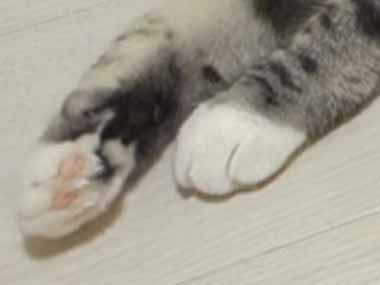 飼い主さんがその前足に、指を乗せてみた。