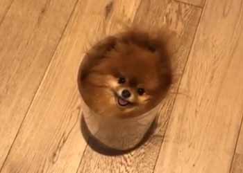 モフモフでふわふわなポメラニアンを、透明なカップに入れてみる。