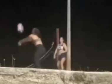 バレーボールを楽しむ家族。