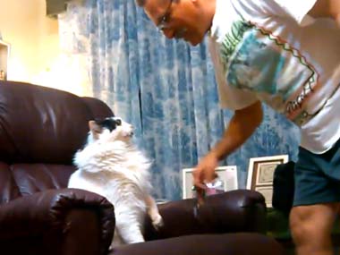 ネコが「犬のベッド」でくつろいでいた。ちょっとどいてよ~。どかない! → すると犬はこうした…