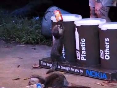 がんばるカワウソ君、でもゴミ箱に入れたい「空き缶」がクルクル回っちゃう