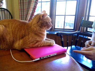 人「ちょっと使いたいんだけど・・・」     猫「ダメにゃ~ん!」