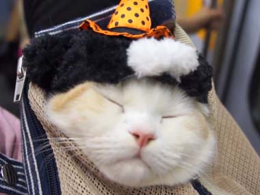 ネコ好きは恐怖のあまり震え上がる? うちの猫に「お手軽な仮装」をしてもらった → こんな顔になりました… 【ハロウィン】
