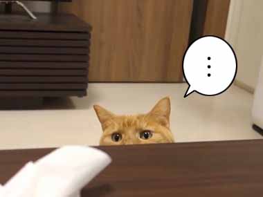 アライグマが「床の掃除」をする → ほら、やったよ、オヤツちょうだい!