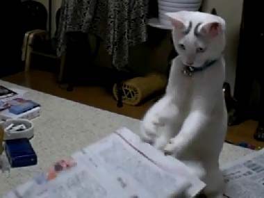 【ネコ】 お父さんが新聞を読んでいた。そこに猫がやってくる → こうしちゃう…