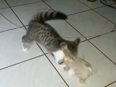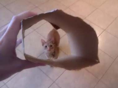 子猫が ねずみのヌイグルミで遊んでいる → 飽きたのか部屋から出て行った → すると・・・